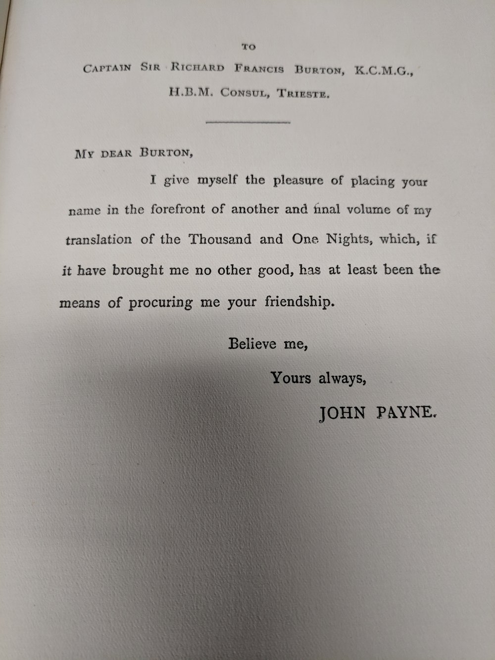 John Payne: Dedication to Richard F. Burton (1884-89)